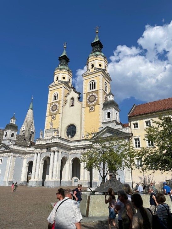 Zurück in Brixen ging es auf einen geführten Stadtrundgang. Brixen ist eine Barockstadt und liegt eingebettet zwischen den Flüssen Rienz und Eisach und ist von Kastanienhainen, Apfelwiesen und Weinbergen umgeben. Schon im Mittelalter machten viele Händler, Künstler und Reisende auf ihrem Weg zwischen Süden und Norden in Brixen Halt und hinterliessen Spuren; gotische Bauwerke, Gemälde aus der Renaissance und barocke Kirchen. Das Nebeneinander von italienischer Lebenslust und Südtiroler Gemütlichkeit, Laubengängen und idyllischen Gässchen verleihen Brixen eine ganz besondere Note.